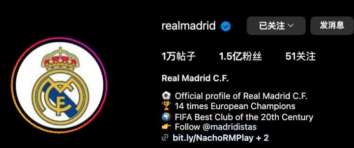 皇马单一社媒粉丝量突破1.5亿,成首家达此成就的体育俱乐部ETChalmers @懂球帝2023-12-15 20:56官方消息,皇家马德里某社交媒体账号粉丝数量达到1.5亿,成为该平台达成这一成就的体育俱乐部。12月15日,皇家马德里官方宣布,俱乐部在某社交媒体平台的粉丝数量突破1.5亿。皇马官方表示,他们是首家在该平台粉丝量达到这一数字的体育俱乐部,也是该平台粉丝量第三多的品牌。此外,皇家马德里各大社交媒体平台总粉丝量在今年9月突破5亿,也成为首家达成这一成就的体育俱乐部。展开更多