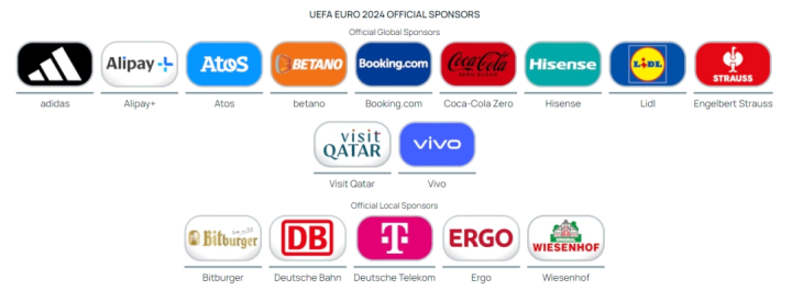 正是在商业广告方面可以看出某些足球经济的微妙变动因素。2020年欧洲杯的全球赞助商数量为12家,而2024年欧洲杯暂时还没达到这个数字。部分品类的赞助商退出后,也暂时没有同样品类的其他品牌加入。例如2020年欧洲杯的赞助商中有能源巨头俄罗斯天然气,而2024年欧洲暂时还没有能源企业赞助。另外自从麦当劳在2016年最后一次赞助欧洲杯后,外卖平台Takeaway.com一度在2020年欧洲杯成为新的食品类赞助商,但并未续约至2024年。现在2024年欧洲杯也暂时没有食品类赞助商。