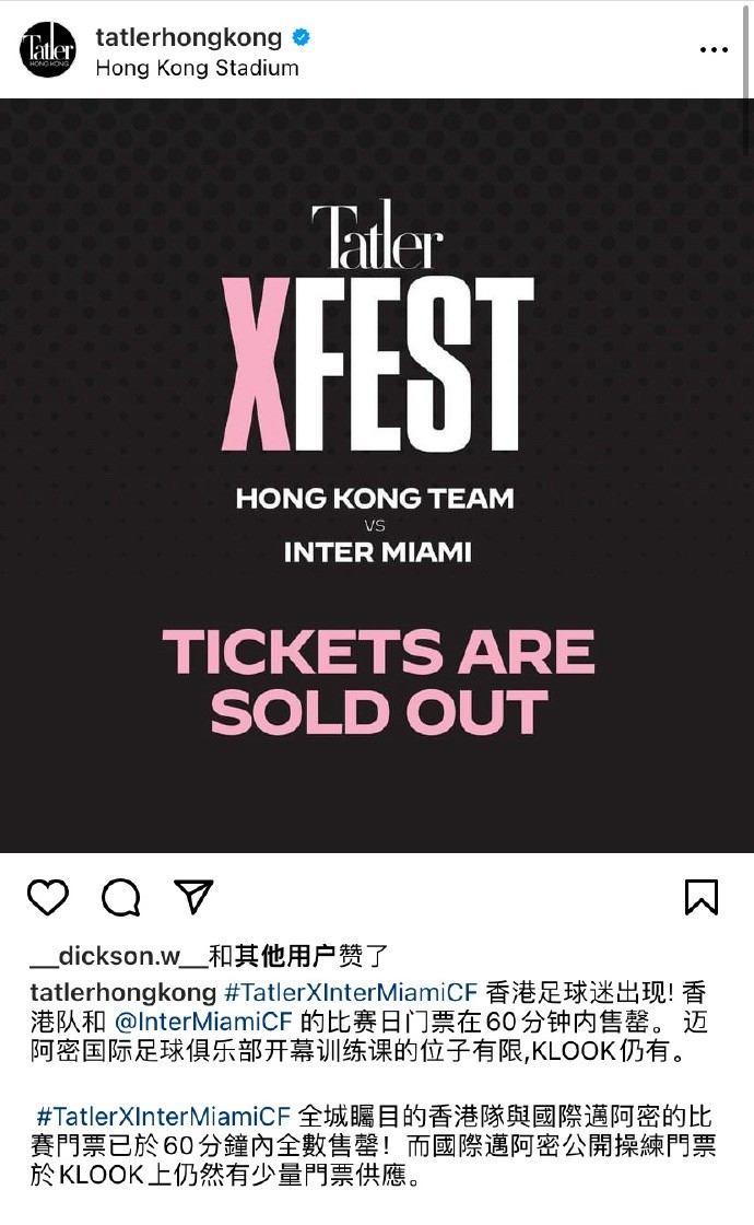 12月15日(周五)上午11点,主办方通过Klook(客路)App进行公开售票,购买比赛门票者可获得购买训练票的50元优惠券。Tatler Hongkong社交媒体账号称,比赛门票在60分钟内售罄。2月4日比赛,差不多提前两个月拿到比赛审批手续,提前一个半月售票。对商业比赛而言,这是个相对标准的流程。