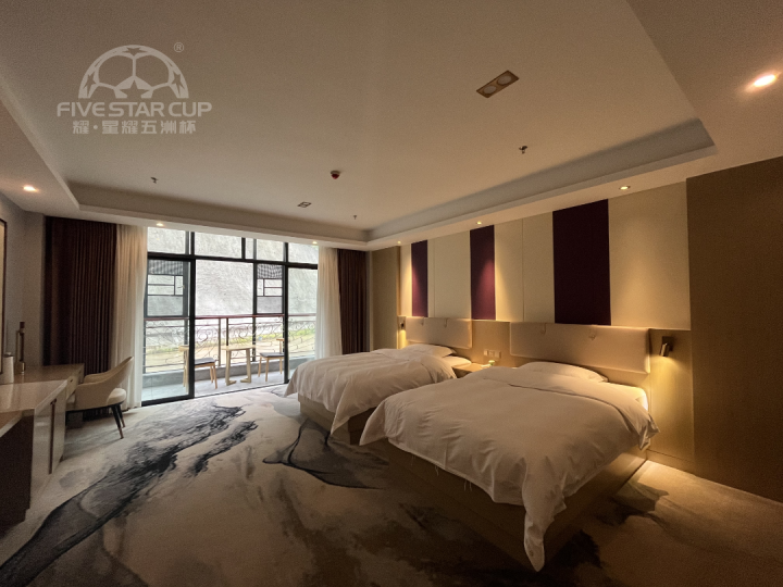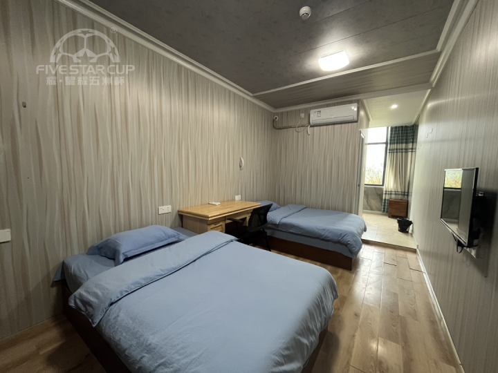 基地配备近三百间客房,其中按四星级标准装修的酒店内配套单人房、双人房,公寓楼配套标间、三人间以及四人间,另有2间球队别墅。