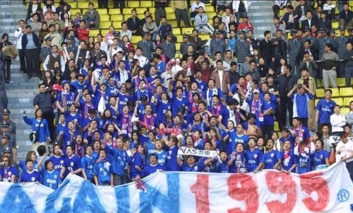 2003年申花联赛夺冠时刻,看台上的球迷打出“AGAIN 1995” 横幅(后因中国足坛的反腐扫黑,冠军被中国足协取消)