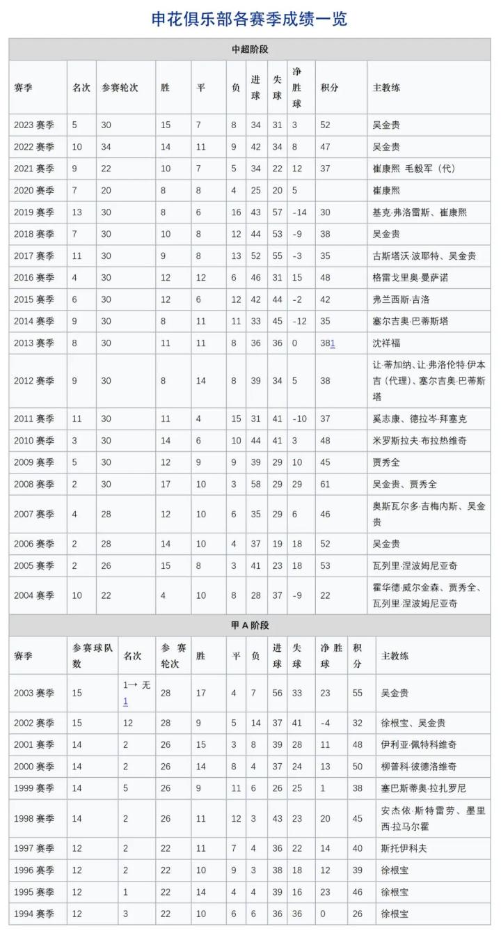此后,申花开始聘请洋帅,中西合璧的主帅选择思路,也让申花打上了鲜明的烙印。