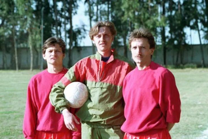1994年3月,上海申花俱乐部首次引进的3名俄罗斯外援,右起莎沙(前卫)、季马(守门员)、瓦洛佳(前锋)。3人的合同聘期为一年