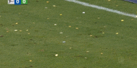 第13分钟,球迷向场内扔入金币巧克力,以表球迷的抗议心情