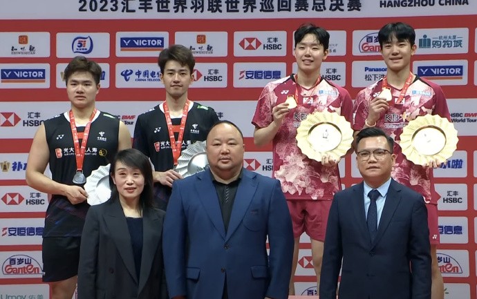 2023年世界羽联总决赛男双决赛,中国组合梁伟铿/王昶0-2不敌韩国组合姜珉赫/徐承宰屈居亚军。但梁王组合还是凭借2023年的优秀发挥排名年度积分榜第一。