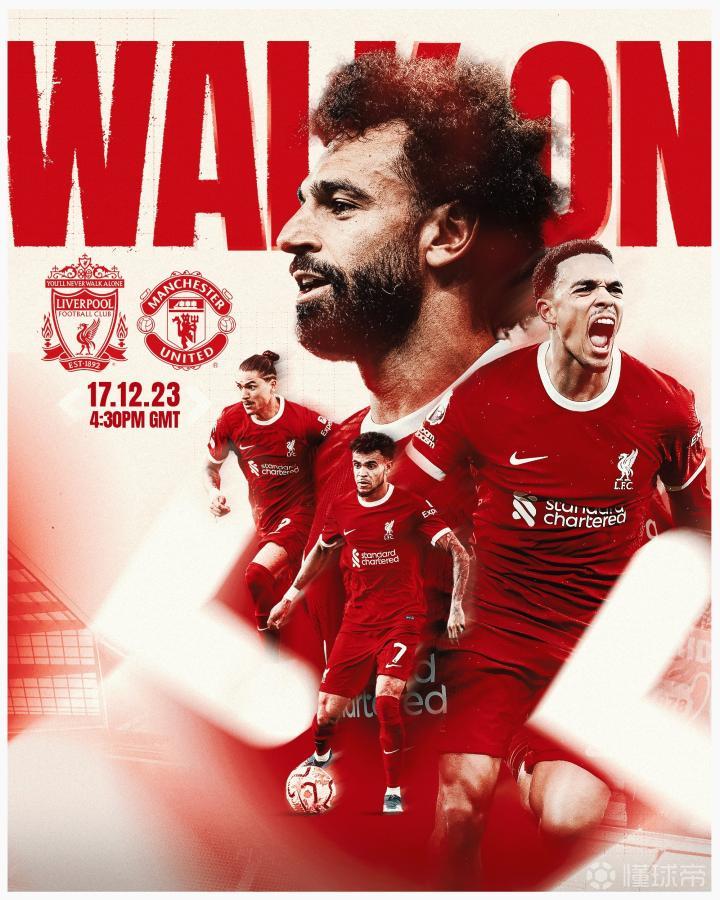 英超第17轮迎来双红会,利物浦将坐镇主场对阵曼联,赛前,利物浦官方发布比赛海报,萨拉赫领衔出镜。