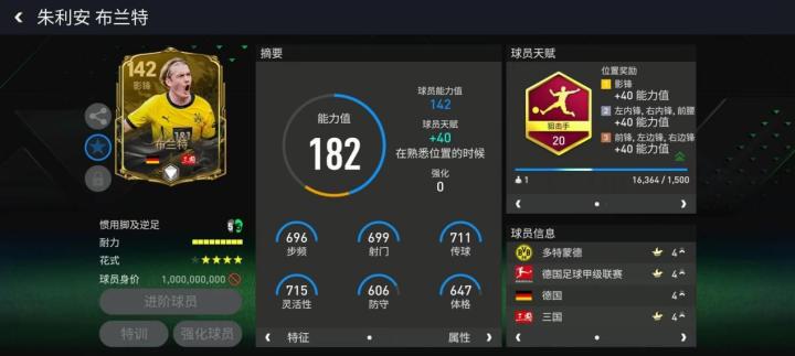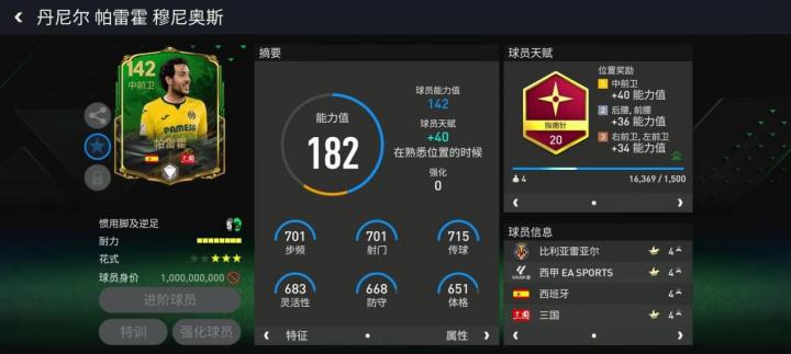 这张初始能力值142版本的帕雷霍注重强化了他的远射与双速,他的定位更像是一个B2B球员。攻防两端的数据配置都很华丽,但帕雷霍的身材模型与体格数据是短板,实战中要避免对抗。
