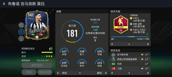 吉马良斯在游戏中多以后腰的位置出线,在三国活动中位置变成了中前卫,配搭坚如磐石天赋强化了他的防守能力,加上他本身就十分出众的出球能力,他的全面性得到了极大程度的提高。
