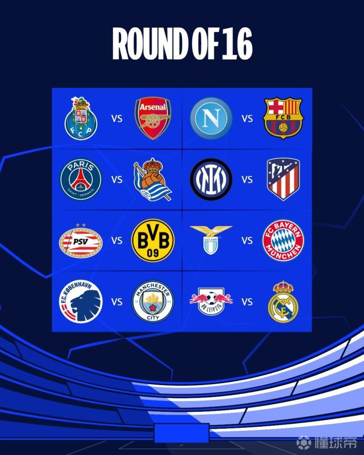 欧冠16强战赛程:北京时间2月14日凌晨皇马、曼城率先出战