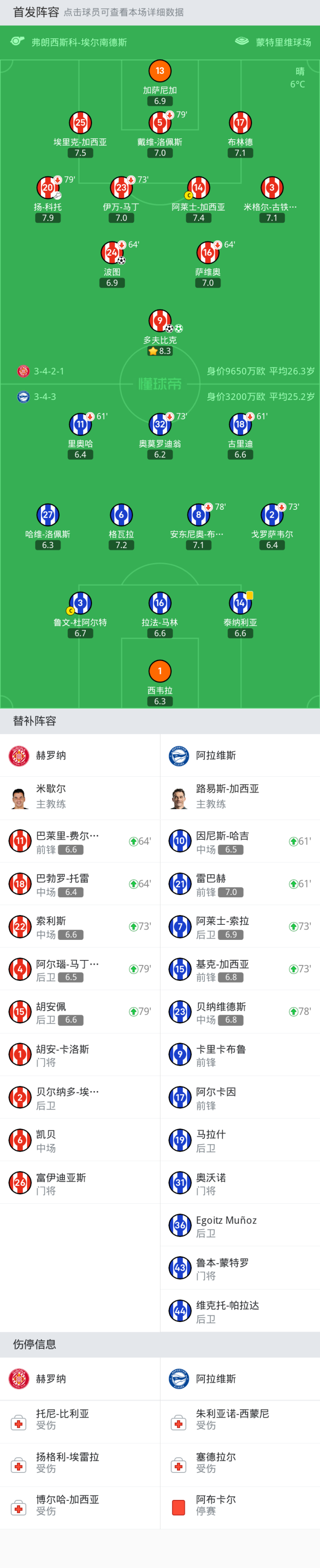 替换下场:61'11-里奥哈, 73'2-戈罗萨韦尔, 61'18-古里迪, 78'8-安东尼奥-布兰科, 73'32-奥莫罗迪翁
