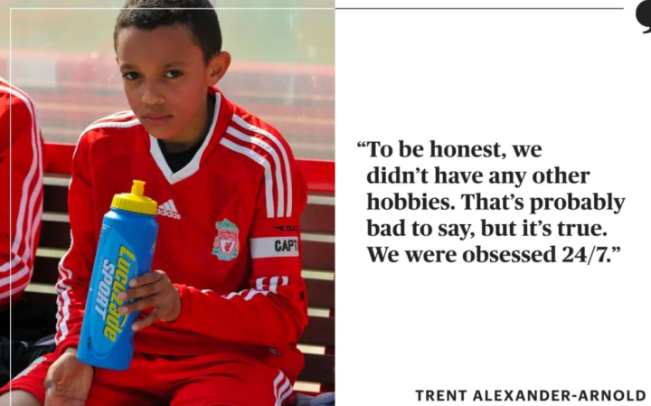 阿诺德小小年纪已经拥有雄心壮志,是因为他的足球天赋很早就显现出来。早来一年前,刚刚六岁的他就获得青训教练的赏识,加入利物浦青训营。