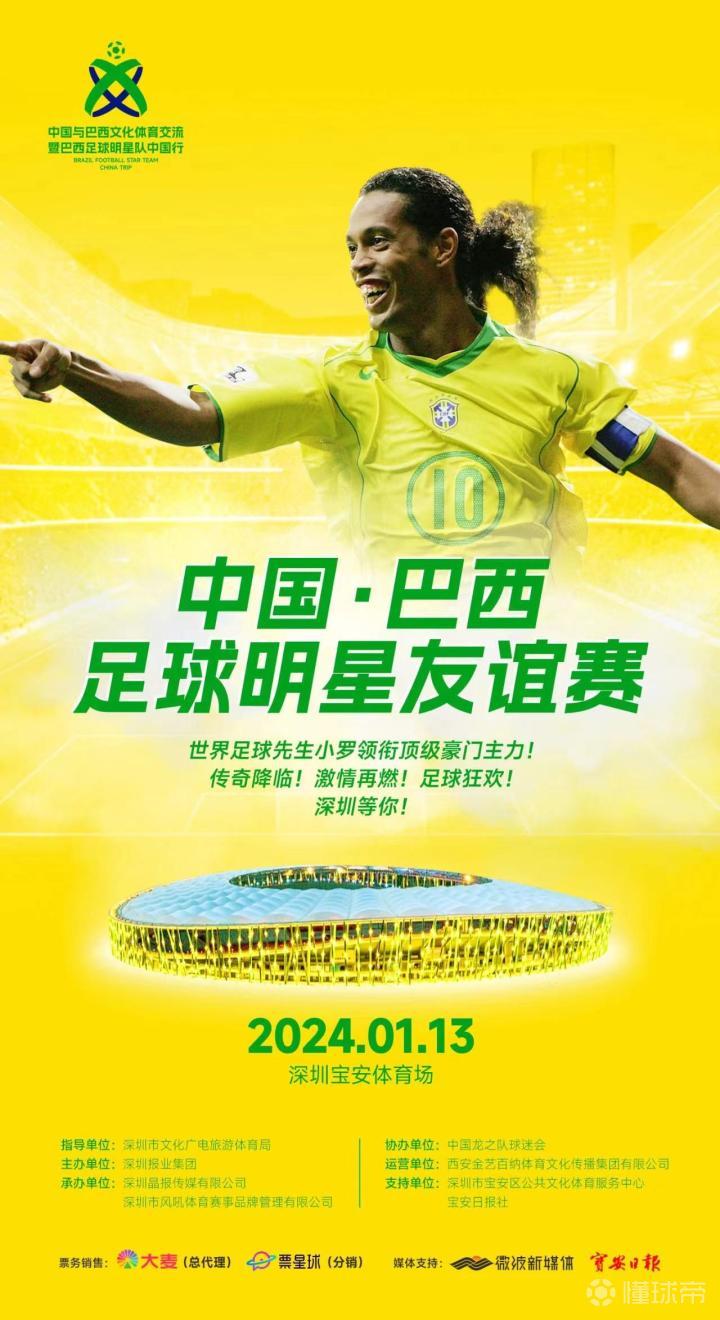 中巴明星友谊赛1月13日在深圳举行,小罗领衔再战02国足