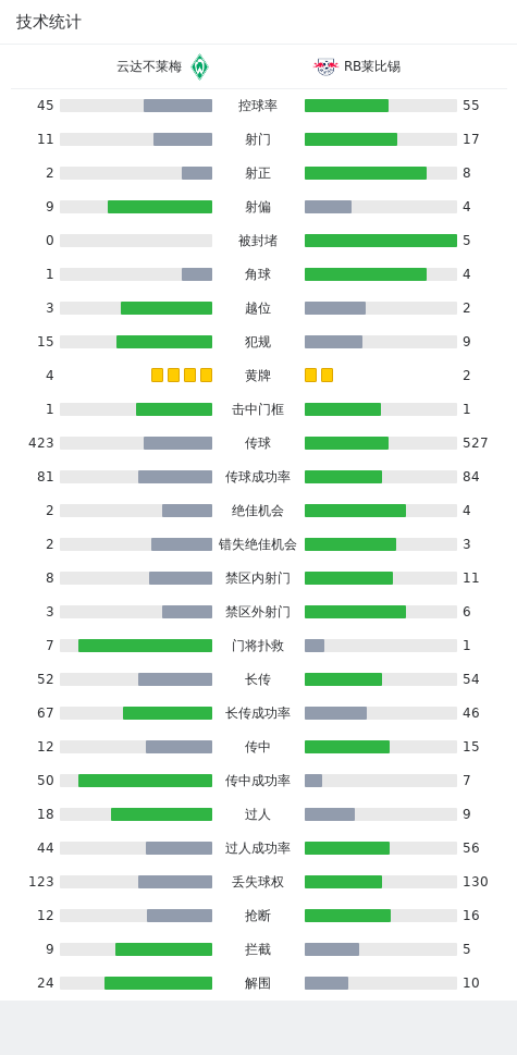 北京时间12月20日德甲 联赛 第16轮,云达不莱梅主场对阵RB莱比锡。上半场卢克巴禁区一脚撩射击中立柱,波尔森越位在先,随后门前补射破门被吹掉,下半场福斯贝里挑传,奥蓬达三连击完成破门,杜克施转身兜射击中横梁,斯特奇助攻恩金马外围调整兜射破门将比分扳平,全场战罢,最终比分1-1。
