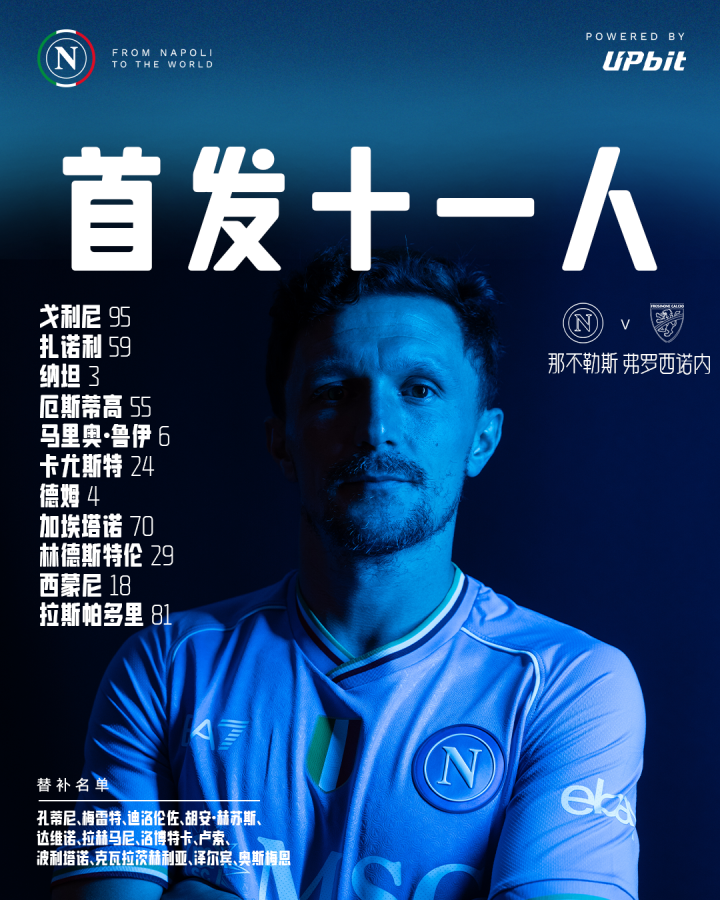 首发阵容 | 意大利杯主场对阵弗罗西诺内,那不勒斯的首发阵容如下: