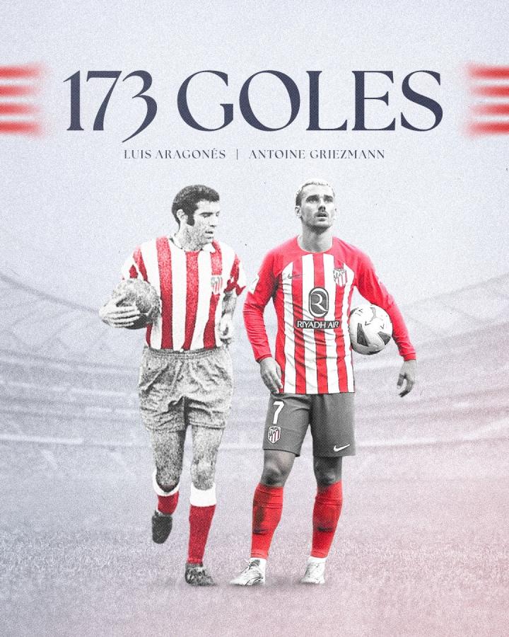 173球,格列兹曼追平阿拉贡内斯并列马竞队史最佳射手四条腿的车 @懂球帝2023-12-20 06:24西甲第18轮主场对阵赫塔费的比赛中,马德里竞技前锋格列兹曼上演梅开二度。在本场比赛中打进两球之后,格列兹曼已经为马竞打进了173个进球,他也就此追平了已故的马竞名宿阿拉贡内斯,并列排在马竞队史射手榜的第一位。格列兹曼效力于马德里竞技期间进球数分布西甲联赛 123球西班牙国王杯 13球欧联杯 6球欧冠 31球展开更多