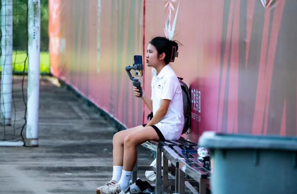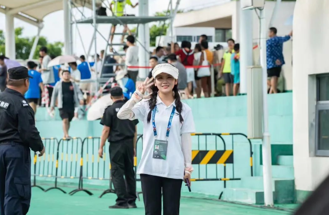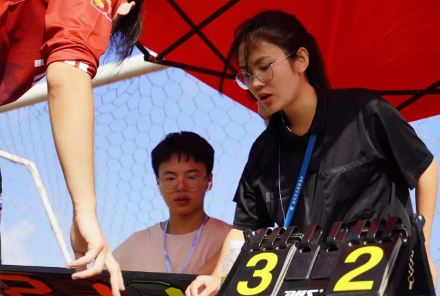 几个月后,在海口赛区,容蓉以志愿者的身份在场边更加近距离地观看了钟浩然的比赛,并且她所做的一切,正是为球星踢的比赛而服务。