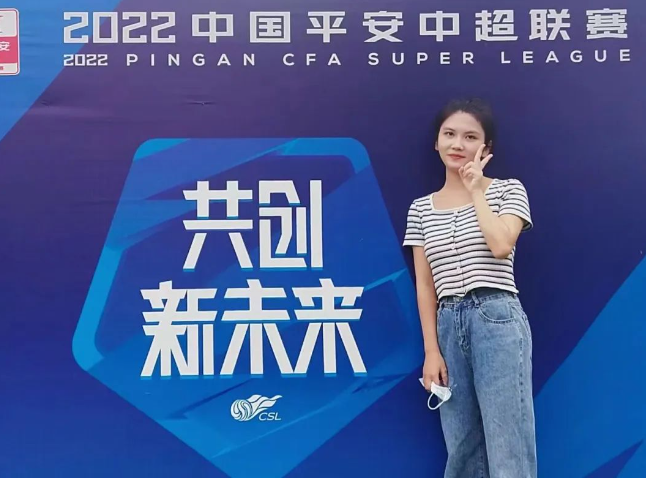 2022年中超开幕式,她以球迷的身份观看了山东泰山和浙江队的揭幕战,在家门口见到了自己喜欢的球员。