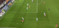 第8分钟,莱特高高跃起甩头攻门,皮球偏出门框范围