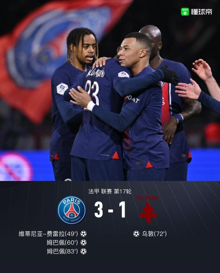 剑南春|巴黎3-1梅斯,姆巴佩生日夜梅开二度,维蒂尼亚传射