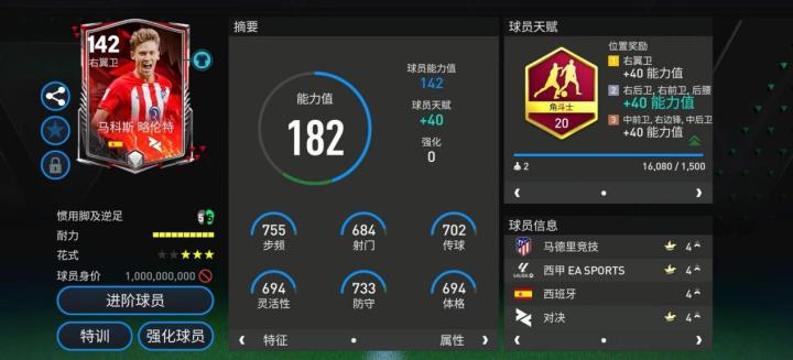 对决活动中,略伦特推出的这张对决现役球员卡基础能力值142,天赋方面,他同样配备了角斗士,这让他实战中的表现更加全面。实战中,略伦特活动范围非常大,整个边路都能看到他飞奔的身影。防守端,他的连续干扰断球成功率高,阵地战中的主动上抢也效果显著。进攻端,略伦特的长传制导精准,搭配稳定的持球能力,他是一个值得信赖的持球点。