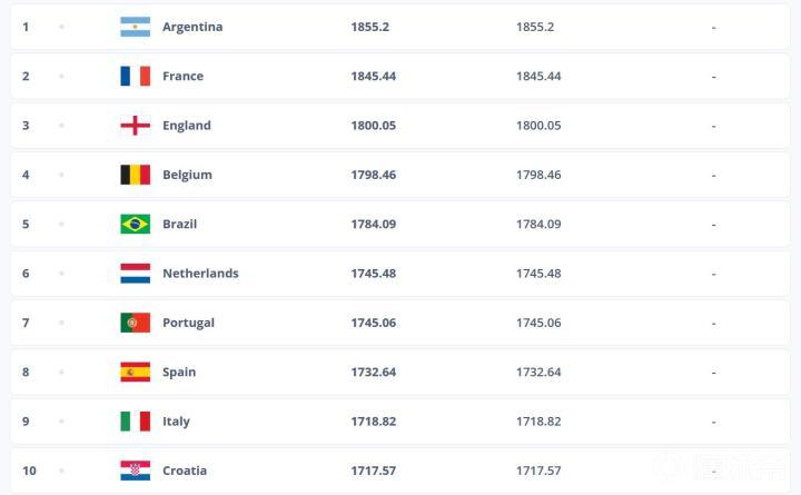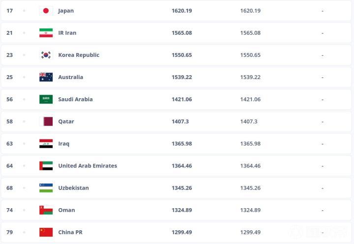 FIFA最新排名:国足世界第79亚足联第11无变化;阿根廷第1