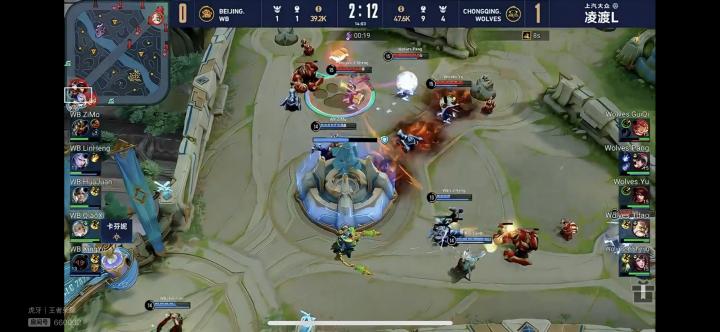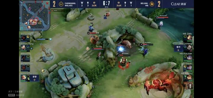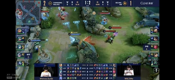 最后一波团战重庆狼队下路上高发力,一波1换4的完美团战,重庆狼队4比2击败北京WB!