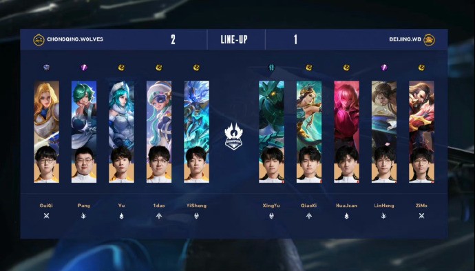 重庆狼队:夏洛特、庄周王、昭君、缇莉、钟馗