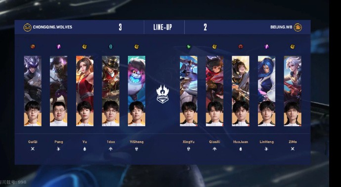 重庆狼队:马超、兰陵王、不知火舞、马可波罗、皮皮