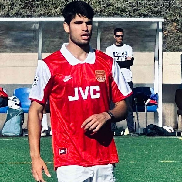 据足球装备网footyheadlines报道称,西班牙网球运动员卡洛斯-阿尔卡拉斯最近在与网球朋友的一场足球比赛中穿着盗版阿森纳1994-96赛季的Nike球衣而成为头条新闻。
