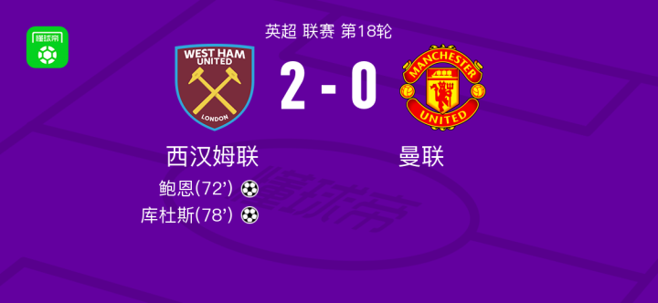 北京时间12月23日西汉姆联vs曼联,库杜斯得到全场最高的7.8分,本-约翰逊得到全场最低的5.6分
