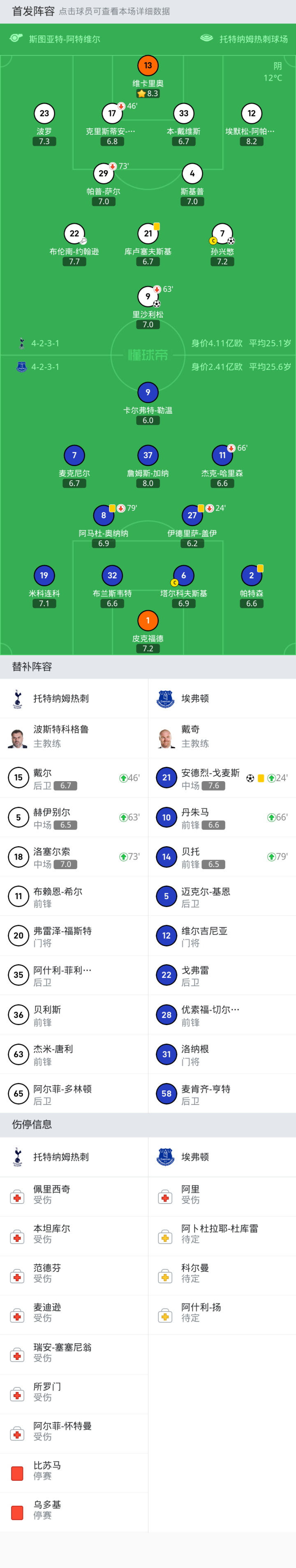替换下场:63'9-里沙利松, 46'17-克里斯蒂安-罗梅罗, 73'29-帕普-萨尔