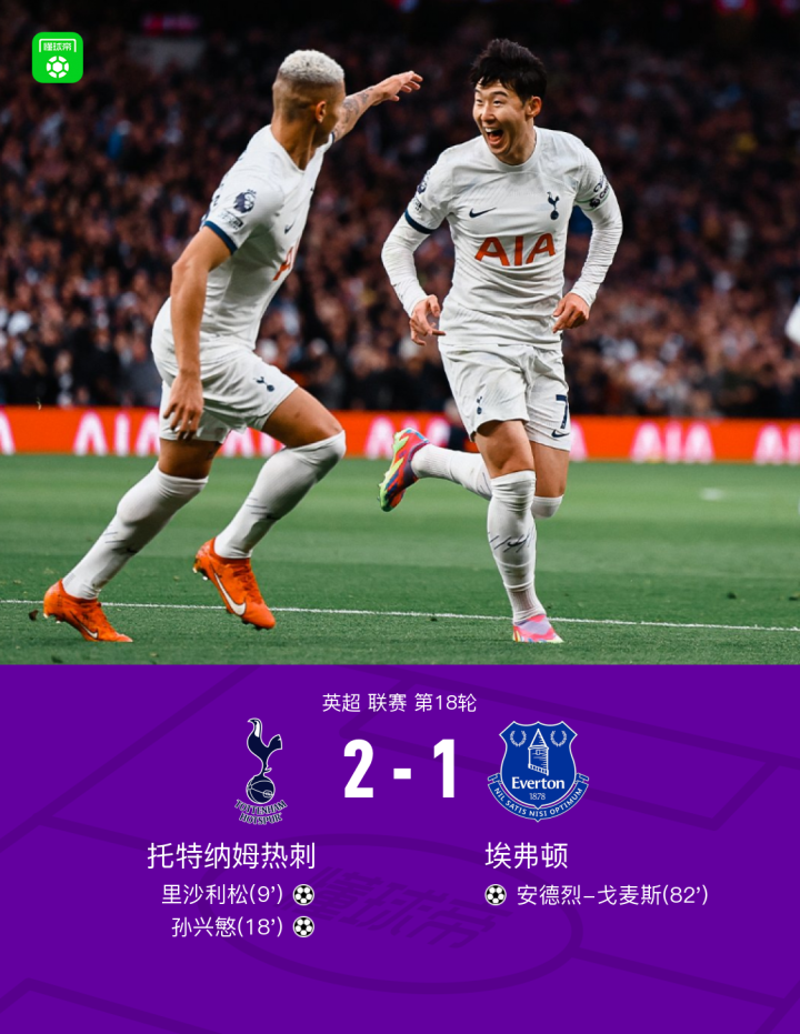 剑南春|热刺2-1埃弗顿取3连胜,孙兴慜破门,里沙利松建功