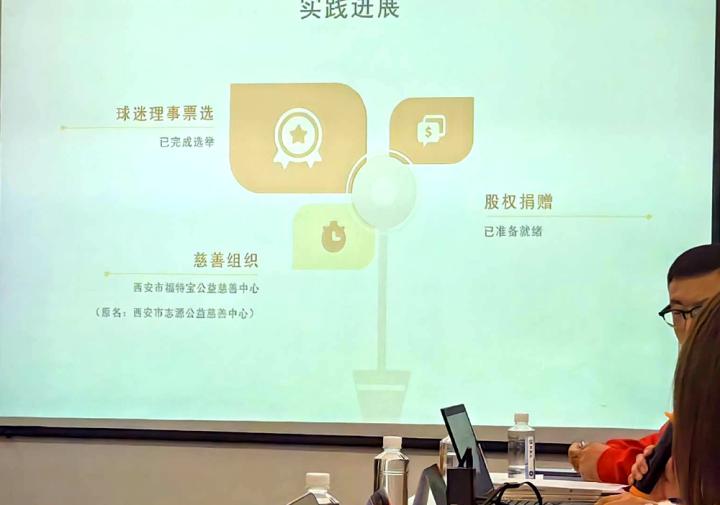 目前,张威设想中的这个慈善组织已经完成搭建,正与行政机关开展审计工作,准备接纳张威的35%股份。该组织的名字叫“西安市志源公益慈善中心”,在接受张威的股份捐赠后,计划改名为“西安市福特宝公益慈善中心”,其中的“福特宝”取“football”(足球)之意。