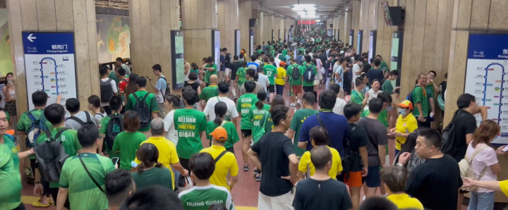 每次国安主场比赛结束后,东四十条地铁站都会涌现出大量的球迷,他们身着绿色的队服。我非常期待,在未来的日子里,绿色队伍能够成为17号线或3号线列车内的一道亮丽风景线。