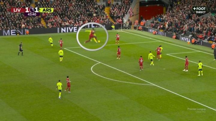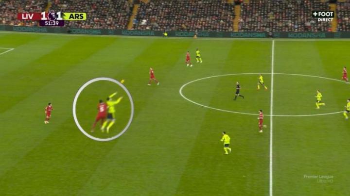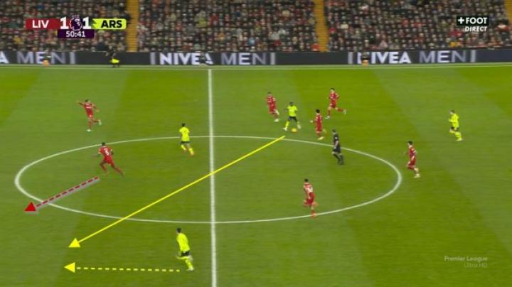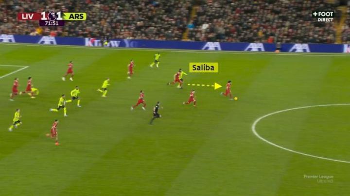 (利物浦打开了纵深,但是萨利巴预判到了萨拉赫的路线)