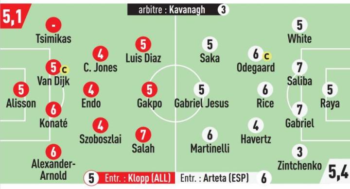 英超联赛中防守最好的两支球队利物浦和阿森纳周六在安菲尔德交锋(1-1),他们打出了一场平衡的比赛,得分机会较少,这是因为法国球员光芒四射,无论是红军的易卜拉希马-科纳特还是枪手的威廉-萨利巴。