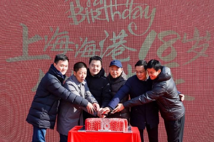 活动尾声,海港球衣造型的18岁红色生日蛋糕亮相,上港集团副总裁、俱乐部董事长兼总经理张敏、上海市慈善基金会副理事长丁斐平、上汽集团公关部总经理管熠中、复旦大学团委副书记王英豪、海港俱乐部党支部副书记沙良昌,副总经理孙祥及球员代表们共同切下蛋糕。