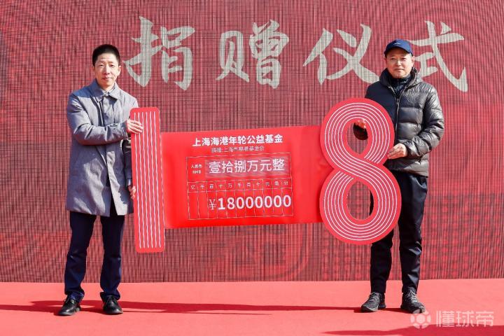 此外,海港俱乐部也向上海市慈善基金会捐出18万元善款。在过去的几年中,每一年俱乐部都会捐出与年龄数字相同数额的善款(以万为单位)。捐赠仪式上,上海市慈善基金会副理事长丁斐平与上港集团副总裁、俱乐部董事长兼总经理张敏共同拉开了18形状的支票。