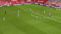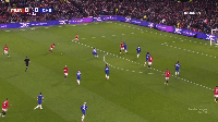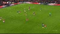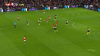 加纳乔在禁区边缘准备送出传中。中路的马夏尔被一名中卫看住,他身后的麦克托米奈被另一名中卫防住。后点的马奎尔得到了和对面边后卫争顶的机会。