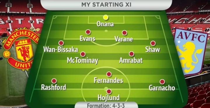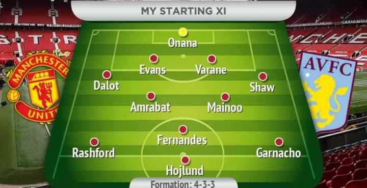 安东尼最近的表现太差,应该离开首发阵容。此外,应该选择阿姆拉巴特和麦克托米奈搭档双后腰,以面对如今排名英超第三的阿斯顿维拉。