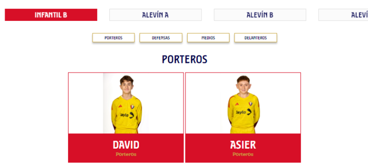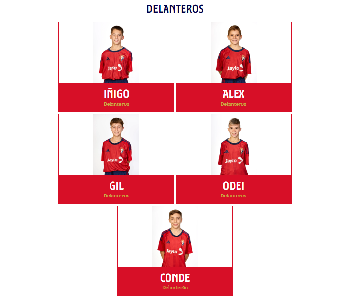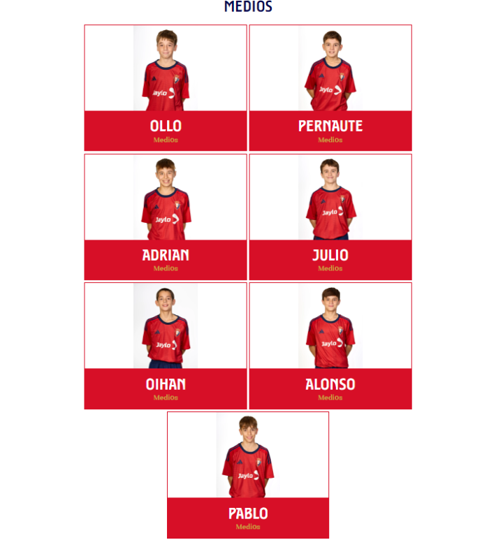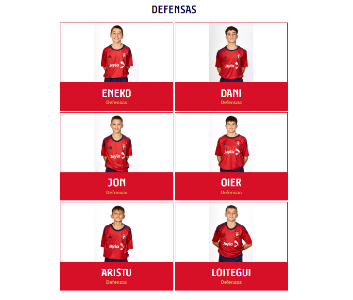 而在每支青年队的名录下,每名青年队的球员会和一线队一样在官网有自己的一席之地,也就是一旦成功成为奥萨苏纳青训球队的一员,你也将是“在编”球员(其他大多数俱乐部只会在官网陈列二队、女队及U19名单),以下是Infantil B队的例子: