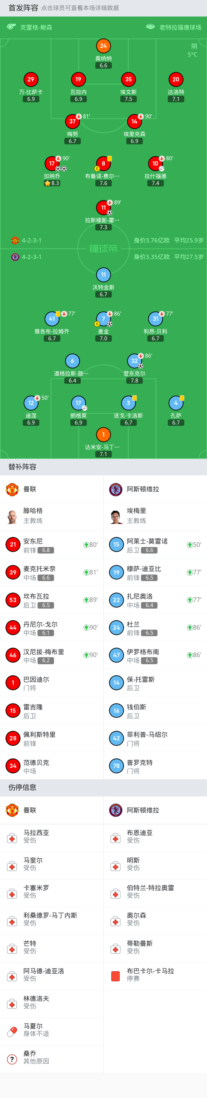 替换下场:90'+414-埃里克森, 80'10-拉什福德, 90'+517-加纳乔, 89'11-拉斯穆斯-霍伊伦, 81'37-梅努