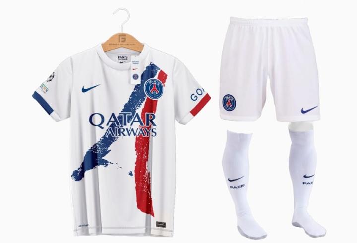 这件球衣是2024法国奥运会的参考球衣,同时也致敬了巴黎1990-1991赛季的客场球衣。这件球衣将作为第三客场出现在球场上。