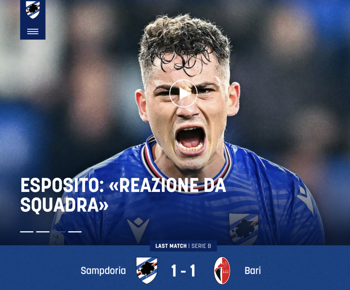 interm17在昨天凌晨结束的一场意乙比赛中,桑普多利亚主场都92分钟破门绝平巴里。进球的是进来状态火热的埃斯波西托!(也就是大家常说的二埃,塞巴埃斯波西托。为啥起火拳,引用海贼王艾斯的外号。上赛季预备队那个是老三皮奥埃斯波西托,在斯佩齐亚)