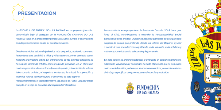 加那利群岛上虽然远离西班牙本土大陆,但是足球氛围与西班牙本土相比有过之而不无极,当地居民对足球的热情渗入生活的方方面面,而拉斯帕尔马斯作为群岛上最大的体育联盟,也秉承“让孩子更好地理解足球”的理念,设置了专门的基金会运营孩童的青训项目,该项目希望孩子们能够以有趣的方式在人生中第一次接触足球, 在不同的训练场景下,足球继续被用作一种训练手段,通过这项训练传递友谊、尊重他人、团结、自我完善等价值观。