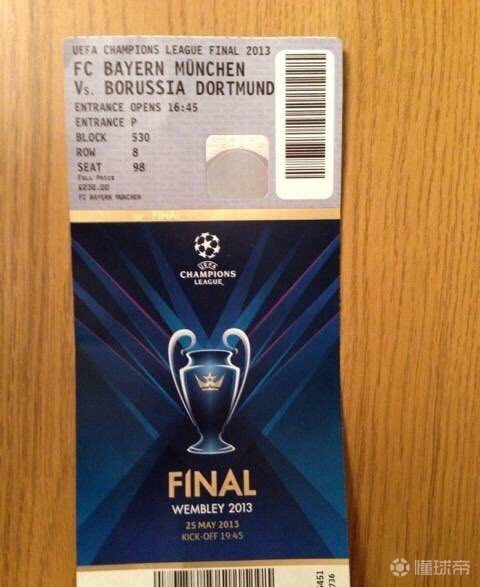 2013年5月25日,当时在英国读书,那年决赛在温布利打。 正好那年拜仁进决赛了,但那时候只能买到黄牛票了,就在craigslist上找了个靠谱的卖家,我们4个人每人买了800镑/张的球票,卖家从一个普通球迷。这个价格基本上是黄牛票价里面最低的了,其他卖家动不动都是1500-2000镑一张 卖家说他本来想和朋友去看的,但进决赛的队居然是两支德国球队😂,就把它卖了赚点钱。 我记得还有很多德国来的拜仁多特的没买到票的球迷,在球场门口举牌子求票。 当天夺冠之后,我把球场送的小旗,夹在车窗上让它在外面飘,回家一路上与伦敦满街的拜仁球迷打招呼庆祝。 太棒的体验。