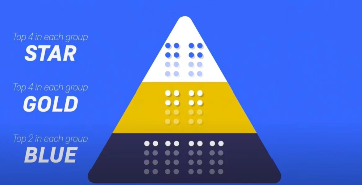 欧超公司A22也趁热打铁发布了欧超联赛接下来的动向——新提议的欧超将由64个俱乐部组成,分为三个级别联赛:明星联赛16支球队(2组8支)、黄金联赛16支球队(4组8支)、蓝色联赛32支球队(4组8支)。
