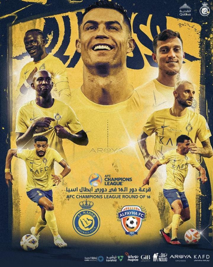利雅得胜利亚冠1/8决赛海报:C罗领衔,马内、塔利斯卡等出镜