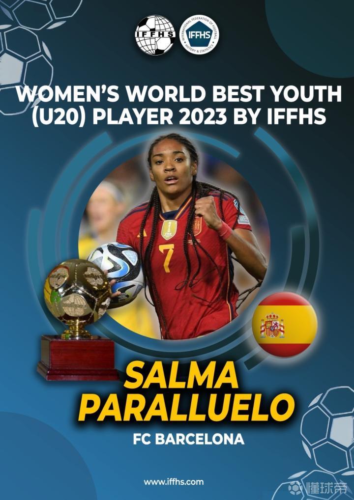 官方消息,西班牙小将帕拉略洛当选为IFFHS年度最佳U20女足运动员。