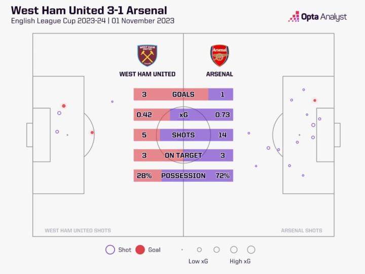 阿森纳vs西汉姆联统计数据:
